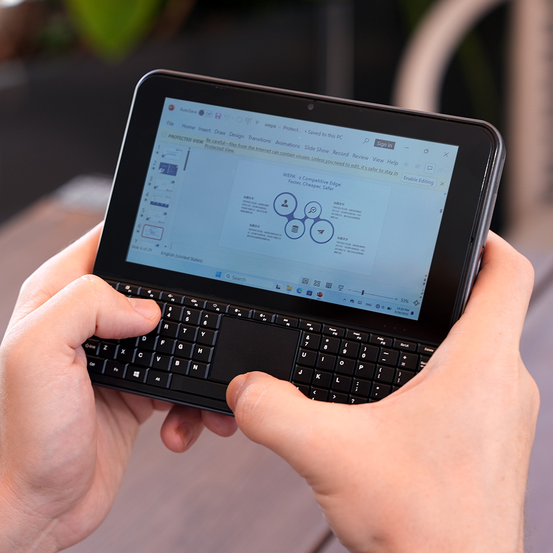 The lightweight design weighs just 326 grams, featuring a 5.7-inch HD touchscreen for intuitive control on the go. Its Intel N150 CPU, 16GB memory, and 512GB storage make it capable of handling office software, multitasking, and video calls effortlessly.