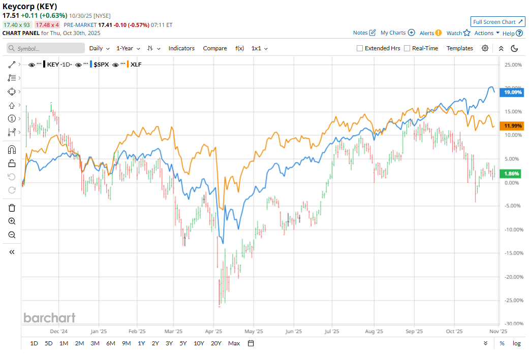 Despite stable operational results, the KeyCorp stock is performing weakly in 2025 because investor sentiment remains cautious around its banking-sector risks, even though earnings have improved. The company posted strong Q3 results with net interest income up 23.8% and net interest margin rising to 2.75% from 2.17% a year earlier. However, market concerns persist around slower loan growth, elevated funding and deposit costs, and whether KeyCorp can sustain earnings expansion in a challenging macro environment.