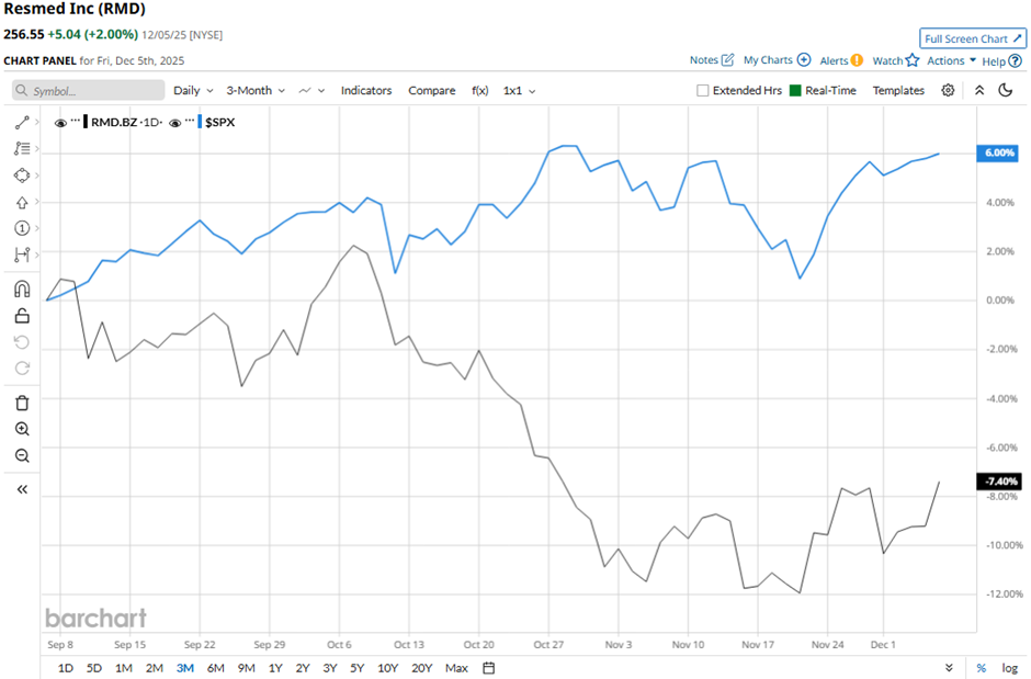 Shares of the medical products maker have fallen 12.7% from its 52-week high of $293.81. RMD stock has declined 7.4% over the past three months, lagging behind the broader S&P 500 Index’s ($SPX) 6% increase over the same time frame.
