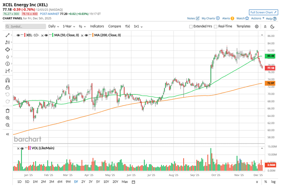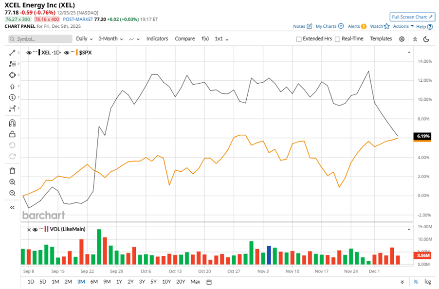Despite its notable strength, XEL slipped 7% from its 52-week high of $83.01, achieved on Oct. 16. Over the past three months, XEL stock has gained 6.2%, outperforming the S&P 500 Index’s ($SPX6% gains during the same time frame.
