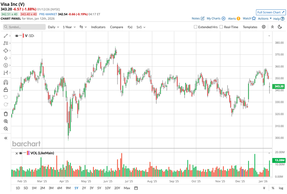 Against this backdrop, Visa (V), which derives its strength from transaction volumes rather than lending spreads, fell 1.9% on Jan. 12. The pullback invites investors to look past headline-driven volatility and consider whether Visa’s transaction-focused fundamentals remain as resilient as ever.