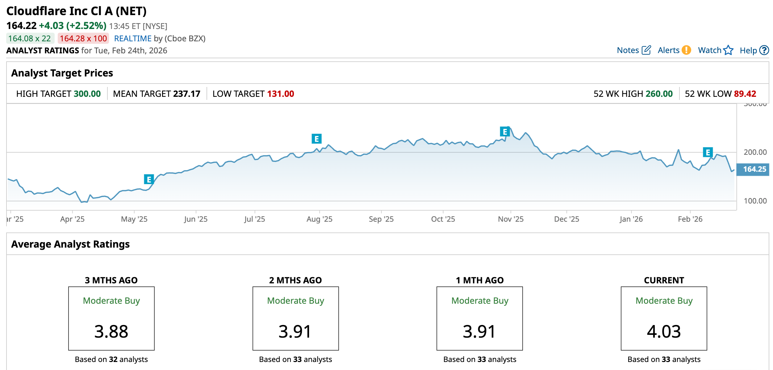 At RBC Capital Markets, analyst Matthew Hedberg has assigned NET stock an “Outperform” rating and raised his price target from $230 to $240, reflecting confidence in Cloudflare’s operating momentum.