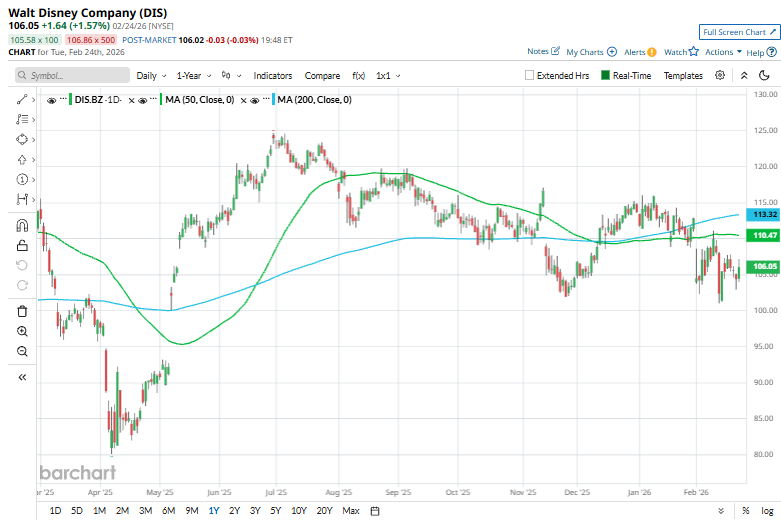 DIS stock has decreased 6.8% on a YTD basis, lagging behind $SPX’s marginal rise over the same period. Moreover, shares of Walt Disney have dropped 4.6% over the past 52 weeks, compared to SPX’s 15.2% gain.