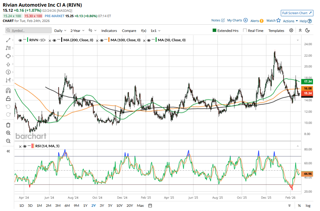 Rivian's (RIVN) stock has looked weak over the last few trading sessions and has pared some of the gains following an impressive Q4 2025 earnings report last week. Electric vehicle (EV) stocks have been out of favor with investors for quite some time, and even Tesla (TSLA) has stopped talking less about electric cars as it positions itself as an artificial intelligence (AI) play.