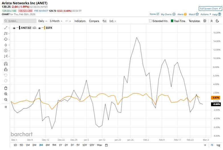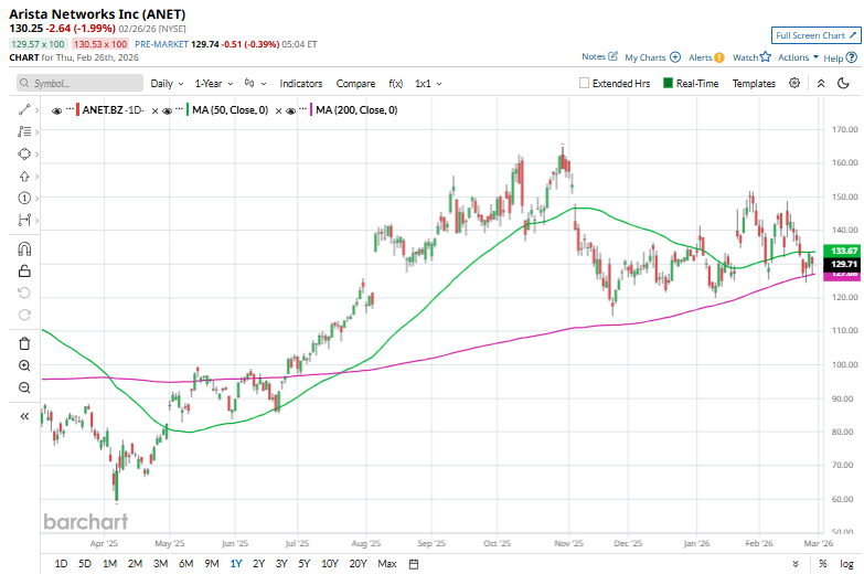 However, ANET shares have dipped 21% from their 52-week high of $164.94. On the positive side, over the past three months, ANET stock has gained 2%, exceeding the S&P 500 Index’s ($SPX) 1.4% gains.