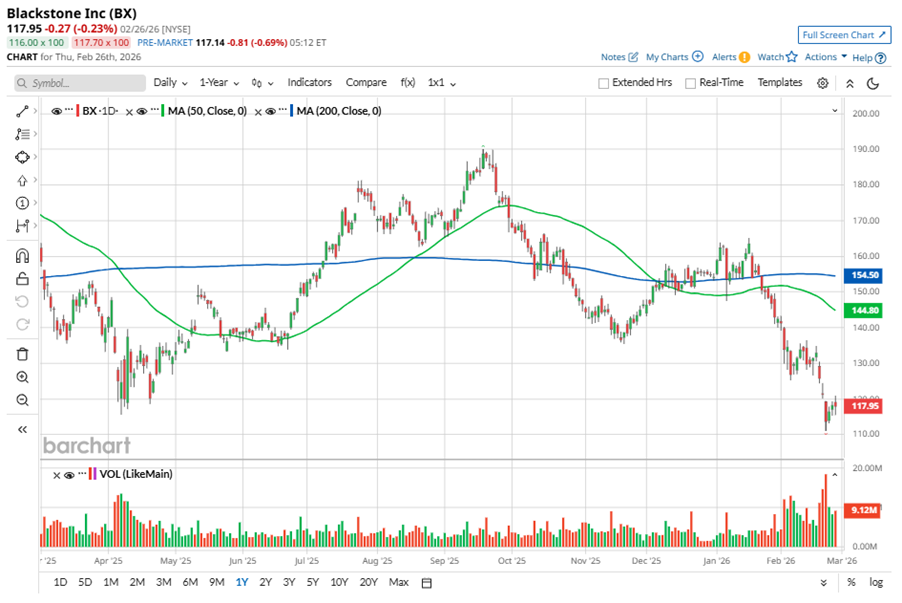 To confirm the recent bearish trend, BX has been consistently trading below its 50-day and 200-day moving averages since late January.
