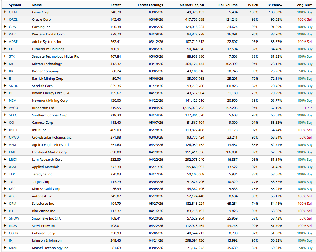 We can use Barchart’s Stock Screener to find other stocks with high implied volatility.