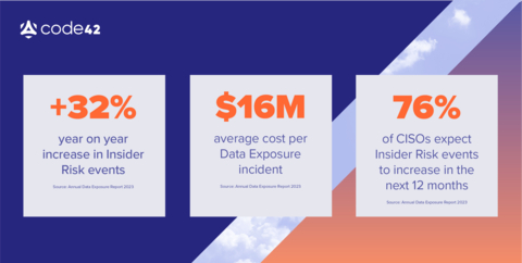 Code42 Software, Inc., the Insider Risk Management (IRM) leader, today released its Annual Data Exposure Report (DER) for 2023. The study, conducted by independent enterprise technology market research expert Vanson Bourne, found that Insider Risk is emerging as one of the most challenging threats to detect, mitigate and manage. Although more than 72% of companies indicate they have an IRM program in place, the same companies experienced a year-over-year increase in data loss incidents of 32%, and 71% expect data loss from insider events to increase in the next 12 months. With insider incidents costing organizations $16M per incident on average, and CISOs stating that Insider Risks are the most challenging type of threat to detect, the report is a clear call to action for the security industry to ‘do better’ and help professionals solve this challenge.