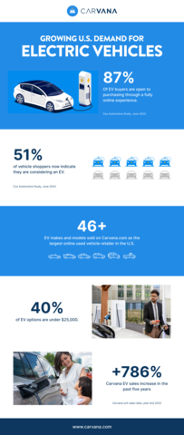 “Carvana offers more than 46 EV makes and models, with more than 40% of our EV options under $25,000,” said Kevin Fitzgerald, Carvana Director of Inventory Purchasing. “Carvana’s digital leadership and customer focus is poised to support more of America’s growing interest in EVs and all vehicles through our proven auto ecommerce platform for buying, selling and trade ins.”