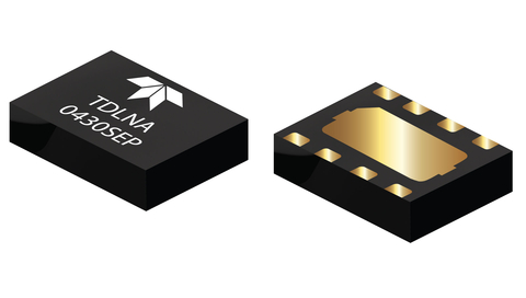 The TDLNA0430SEP LNA leverages monolithic microwave integrated circuit (MMIC) design techniques that deliver exceptional performance for UHF to S-band communication channels. The amplifier delivers a gain of 21.5 dB from 0.3 GHz to 3 GHz while maintaining a noise figure of less than 0.35 dB and an output power (P1dB) of 18.5 dBm. The device should be biased at a VDD of +5.0 volts and IDDQ of 60mA and an evaluation kit is also available for customer evaluation.