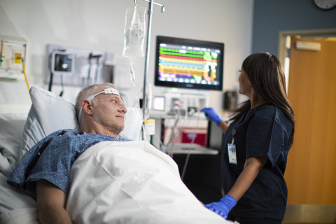 An ICU patient is monitored with a Philips IntelliVue bedside patient monitor (Photo: Business Wire)