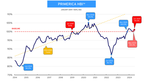 Primerica, Inc. (NYSE: PRI), a leading provider of financial services and products in the United States and Canada, announced today the release of the Primerica Household Budget Index™ (HBI™), a monthly index illustrating the purchasing power of middle-income households with income between $30,000 and $130,000. In June 2024, the average purchasing power for middle-income households was 101.0%, up from 100.3% in May 2024. This marks the second consecutive month purchasing power rose for middle-income families. Declining gas and food prices while incomes continue to rise are the primary drivers for the modest improvements in spending power.