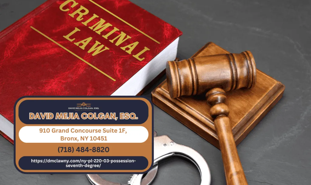 BRONX, NY - New York Penal Law Section 220.03 criminalizes knowingly possessing any amount of a controlled substance, making it the lowest-level drug possession charge in the state while still carrying potential jail time and permanent criminal records. Bronx criminal defense attorney David Mejia Colgan (https://dmclawny.com/ny-pl-220-03-possession-seventh-degree/) provides guidance on the penalties, exceptions, and defense strategies for those charged under this statute.