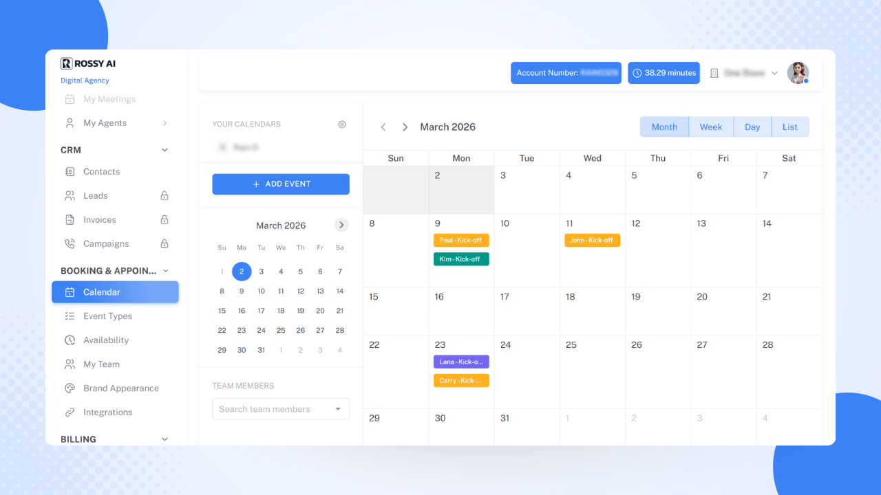 Rossy AI proudly announces the launch of its brand-new Appointment Scheduling Platform, a powerful feature designed to simplify meeting coordination, improve availability management, and enhance team collaboration across all business categories.