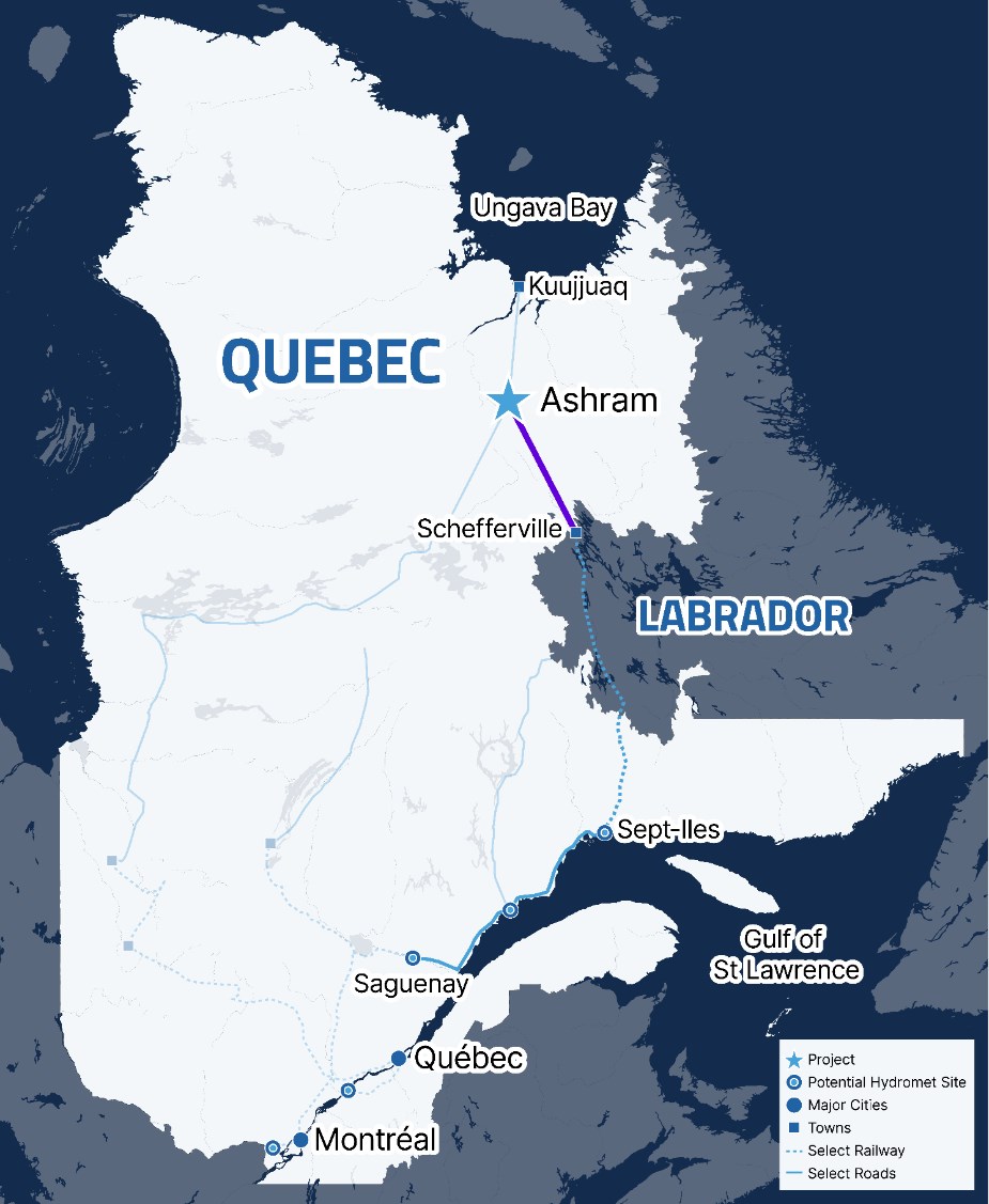 "In addition to bringing this strategically important project into production, a new road would provide significant social and economic benefits to the indigenous communities in Nunavik, as well as other potential exploration and development projects in the district. We look forward to working with the government and communities as we progress the Ashram Project and seek to deliver this important expansion of Quebec's Northern Infrastructure."