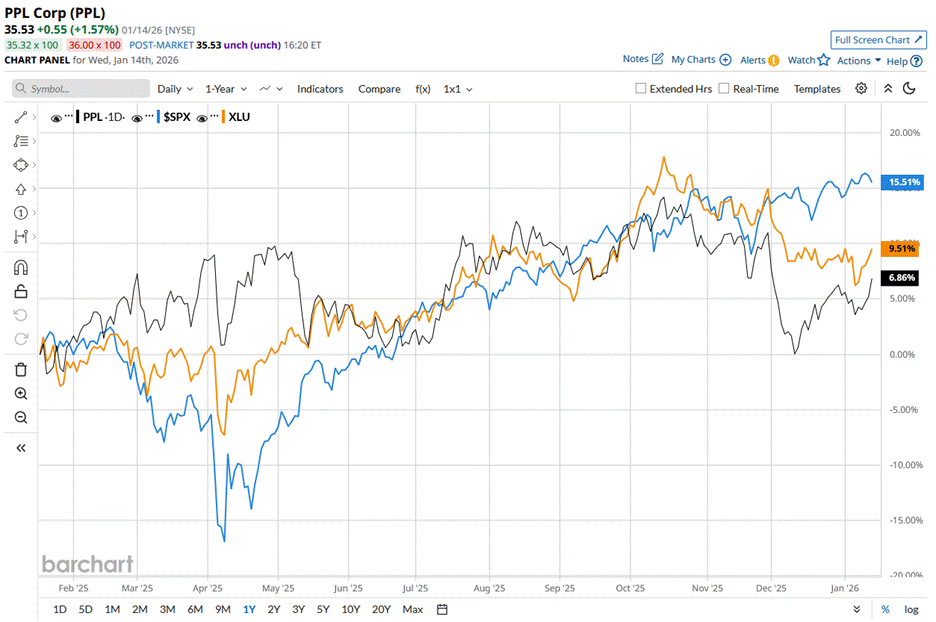 PPL stock has surged 11.1% over the past 52 weeks, underperforming the S&P 500 Index’s ($SPX) 18.6% rise and the State Street Utilities Select Sector SPDR ETF’s (XLU) 14.1% return during the same time frame.