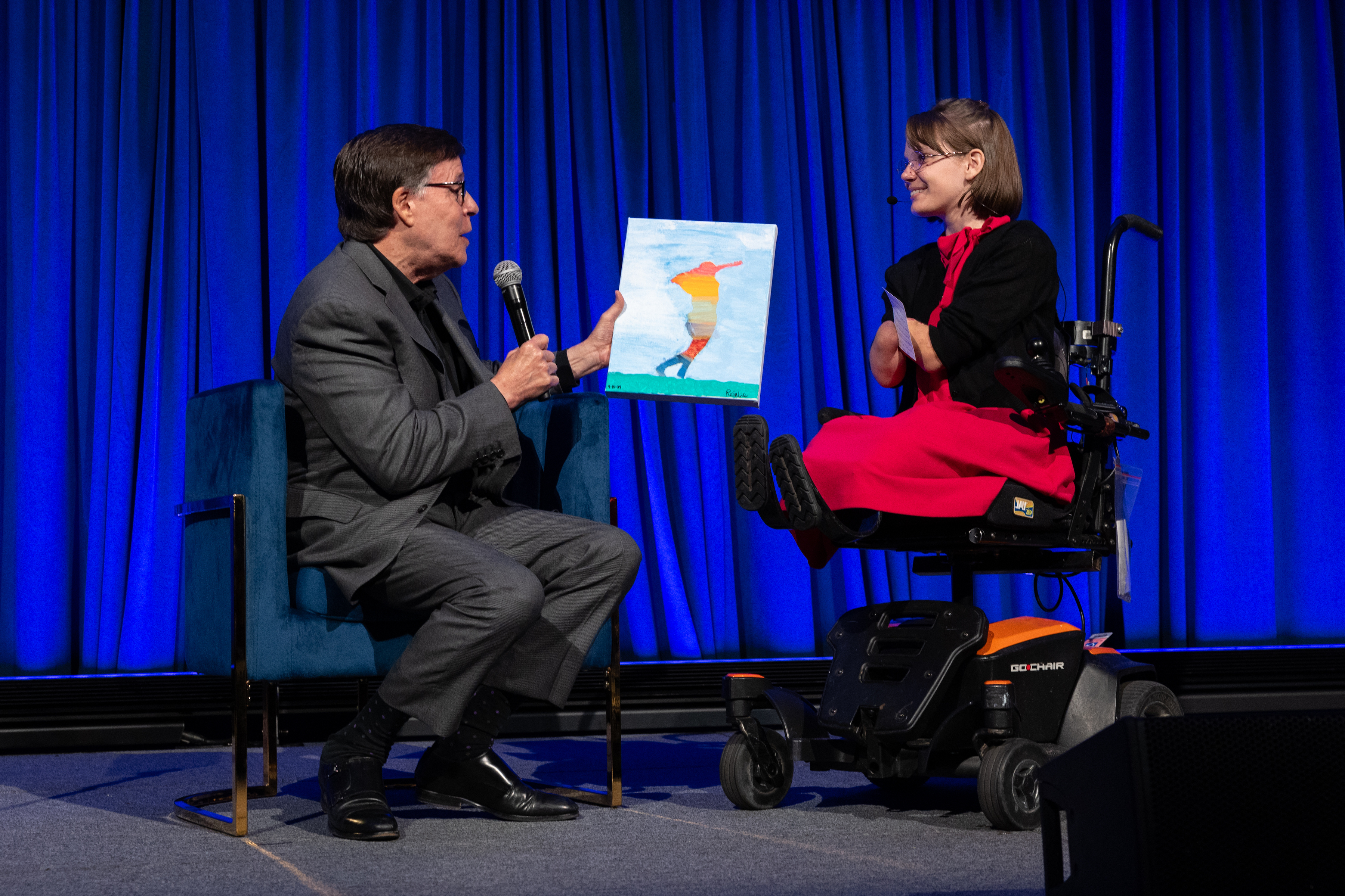Rosalie Parker: A spirited 14-year-old athlete from Boise, Idaho, Rosalie found her passion for adaptive sports through a CAF baseball clinic and now serves as a role model within the CAF community. In 2020, Rosalie lost all four limbs in a life-changing car accident. While being interviewed by Bob Costas, Rosalie presented Bob with a painting. "I painted a woman at bat to symbolize the start of my journey in CAF,” she said. "I want to give this to you because I know you love sports. She's painted as a sunshine because it's the beginning of a new life.”